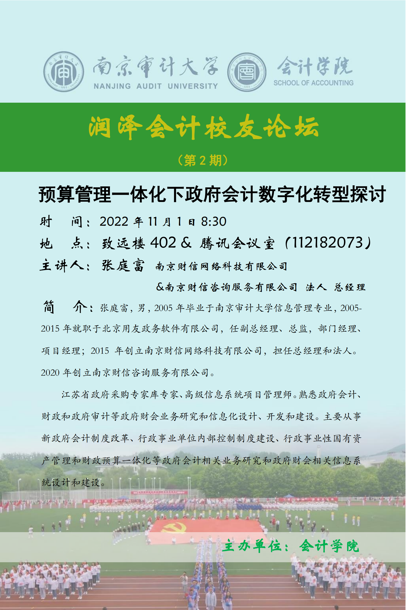 润泽会计校友论坛第2期 :张庭富-预算管理一体化下政府会计数字化转型探讨