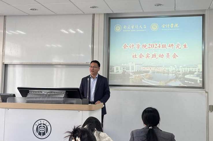 魏东胜作实习动员讲话。他强调实习是学生向社会过渡的关键环节,需要高度重视。他对同学们提出三点要求:一要遵守单位规章,展现南审学子风貌,做到守时、尊师、保密;二要主动学习,留心观察,提升待人接物能力,为步入社会做好准备;三要勤于思考,多问多交流,将理论与实践结合,深化知识应用。最后,他叮嘱同学们注意安全,增强防诈意识,并祝愿大家实习顺利、学有所成。