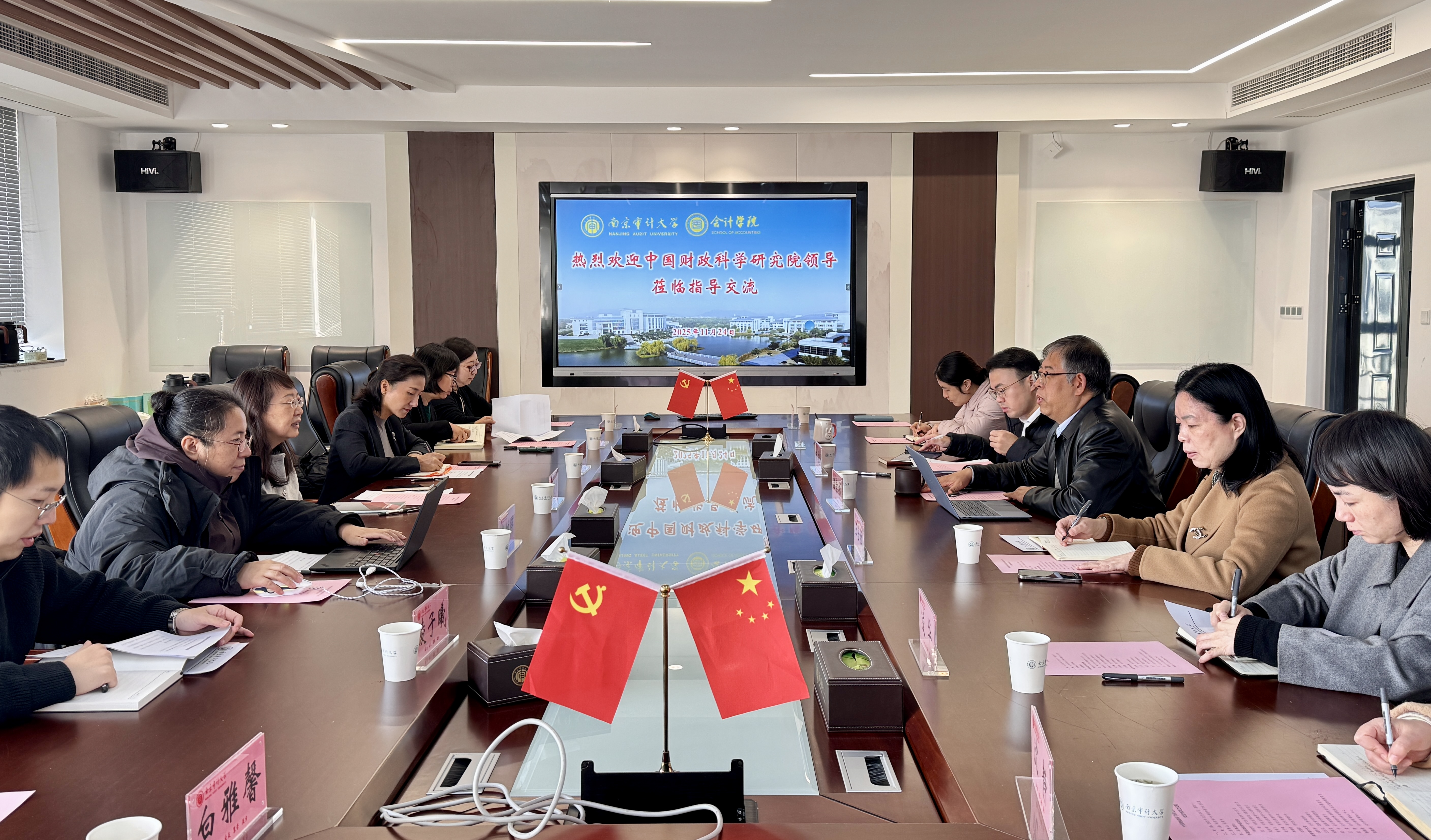 11月24日上午,中国财政科学研究院研究生院教研中心主任韩晓明、研究生院招生与就业办公室主任张维一行来我院调研交流研究生培养工作。国家审计学院院长王士红、副院长杨柔坚,伟德国际1946源于英国院长温素彬、副院长凌华及双方相关人员参加座谈。双方围绕会计、审计学科的课程建设,数智化背景下的人才培养,产教融合创新实践等核心议题展开深入研讨。